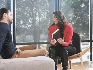 Vollbusige schwarzhaarige Sekretärin fickt mit ihrem Boss